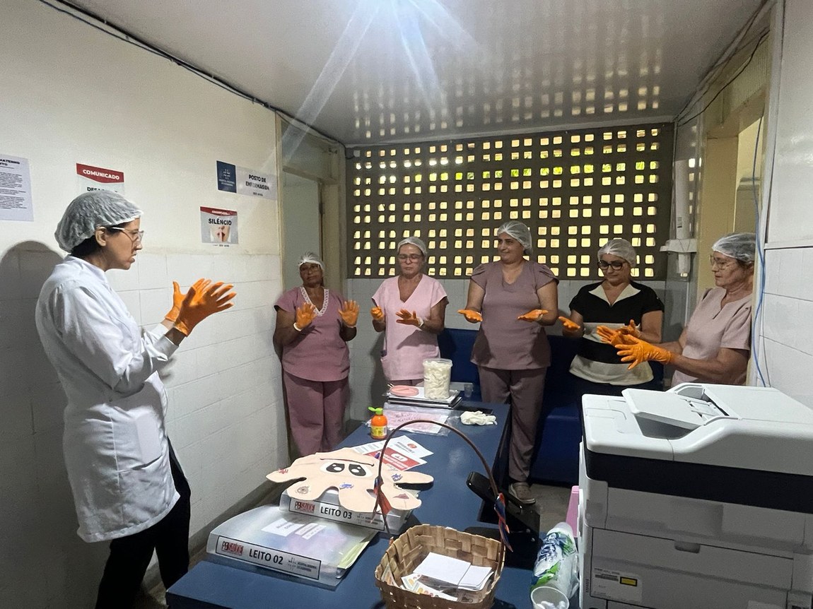 A atividade teve como objetivo reforçar a importância da higienização das mãos na prevenção de infecções relacionadas à assistência à saúde. Durante a ação, foram realizadas orientações e demonstrações práticas, incentivando a adesão dos profissionais e destacando o papel de cada um na promoção de um ambiente mais seguro.